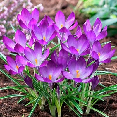 Crocus tommasinianus ‘Ruby Giant’ is a very vigorous and showy variety. You can’t go wrong planting this one among yellow flowered bulbs.
